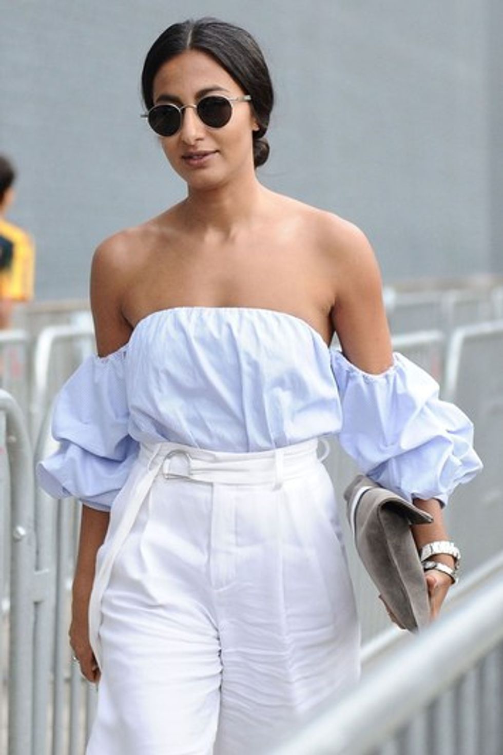 These off the shoulder tops are beyond gorgina! You have to get the right one because you don't want to look like a folded up bed sheet. This one, however, can definitely be pulled off!