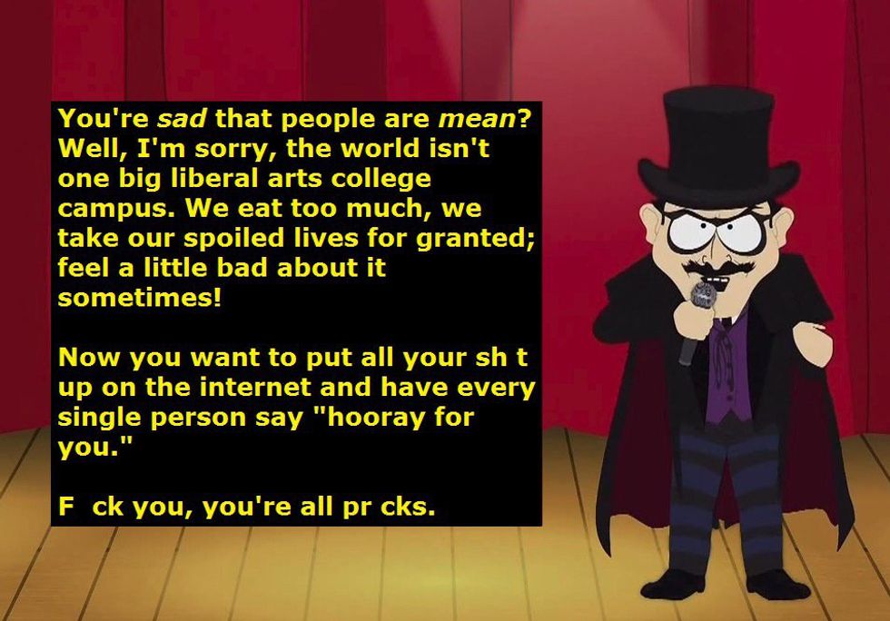 Now that these children are out of their childhood homes, they are being exposed to ideas and opinions that differ from their own. Instead of having their parents there to shield them from things that they may not like, they demand that the college do it instead. This has created an environment in which professors are more concerned about offending their students rather than the substance of their course material. Instead of learning how to think for themselves, and do it critically, students are being taught watered down topics "for their own good."