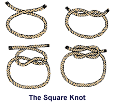 The square knot is helpful in tying two ropes together or for binding things, like bundling firewood. Even though it is not used for safety, this basic knot does have a variety of uses such as shoe and gift tying.
