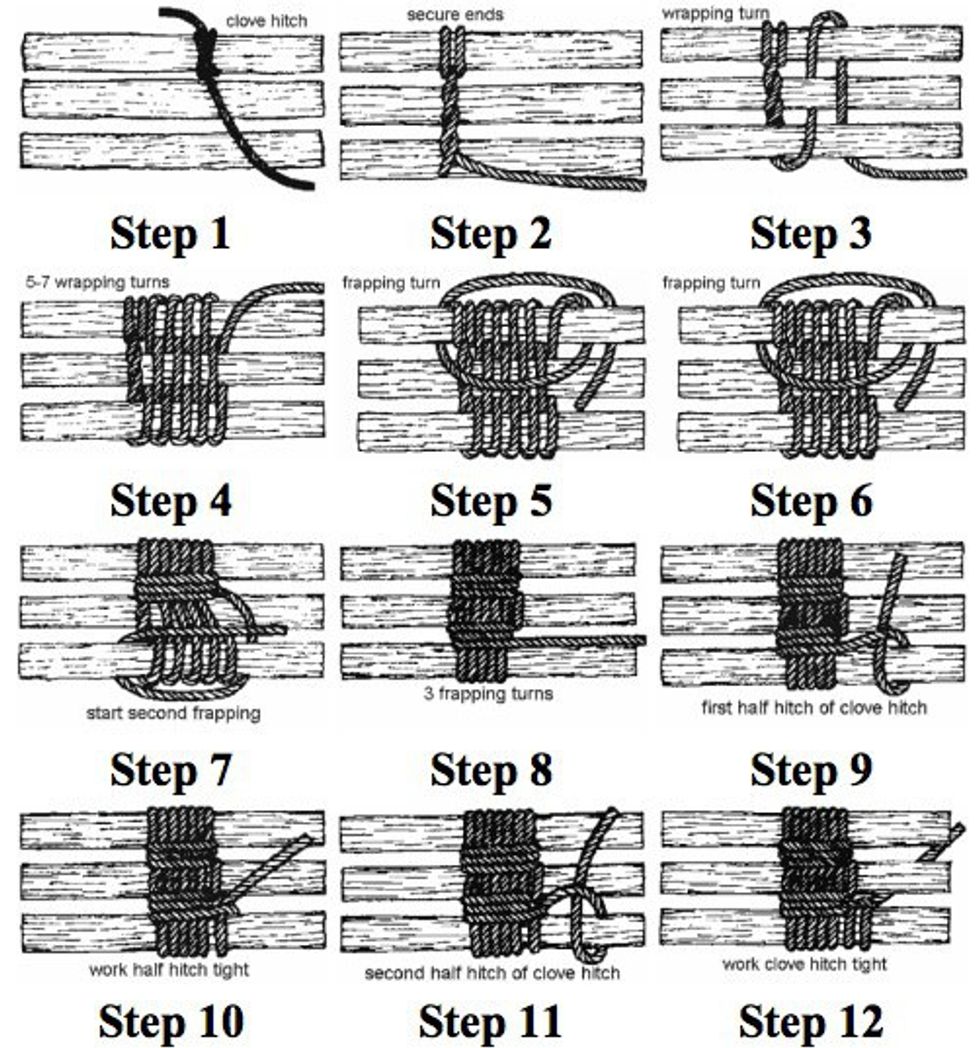 I first learned this knot in my high school gym-class-alternative: Wilderness Survival. This knot ties three poles together and can be helpful in creating shelters or other things needed at a campsite. It looks quite labor intensive but is nonetheless very useful.