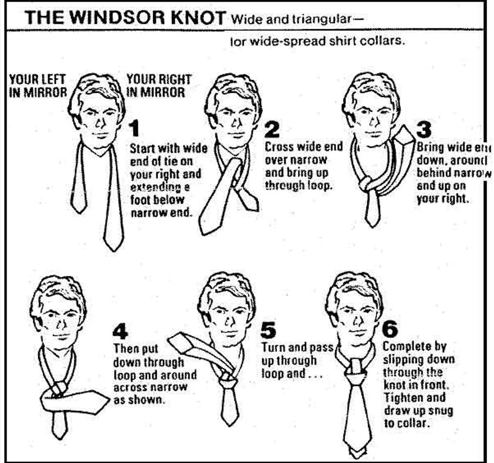 Surprise- this last knot is not one you use a rope for but is possibly the most impressive way a gent can tie his tie. The Windsor Knot looks good for any formal (or even informal) occasion.