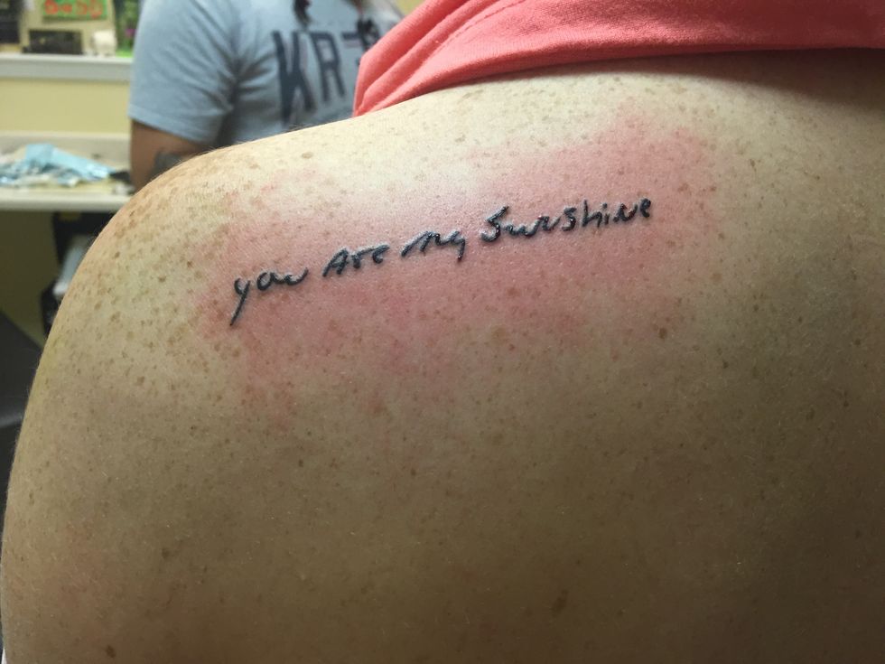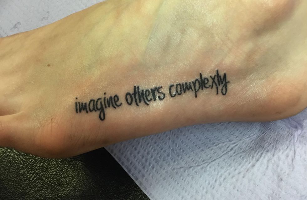 Tattoos, for me, are body decorations. This is my temple, I just choose to decorate it. My tattoos symbolize people, thoughts, and beliefs that are important to me. My tattoos are my story. My tattoos show people who I am.
