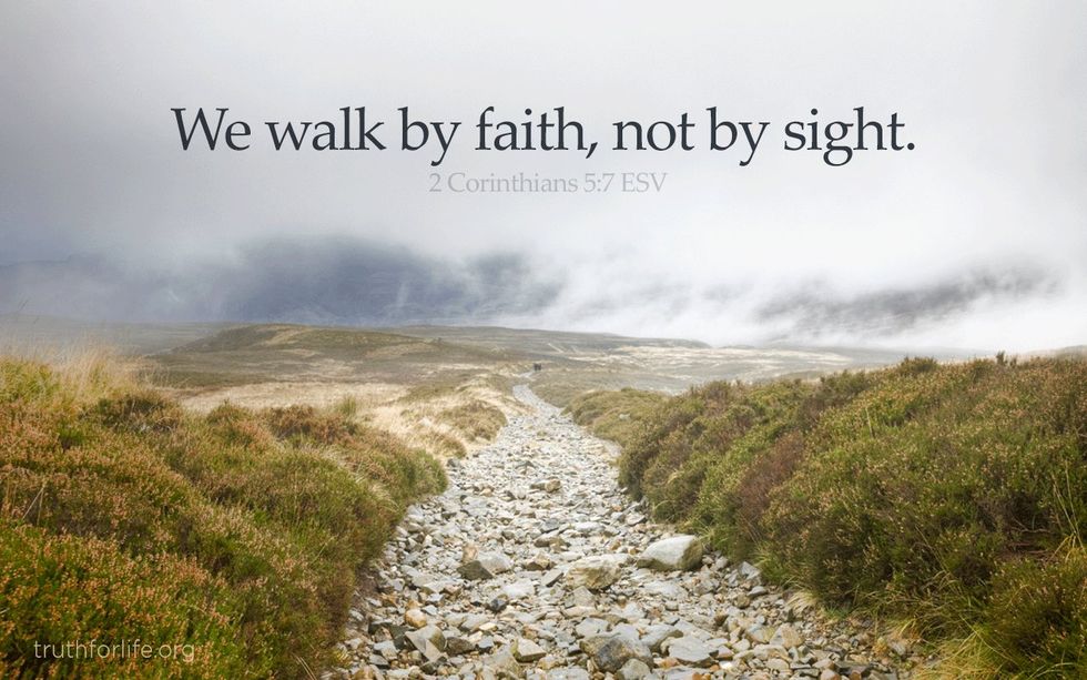 Sometimes it can be hard to trust God especially when human nature tells us we need to be in control. In 2 Corinthians 5:7 we're told to "walk by faith and not by sight". Sometimes this is a hard concept to grasp because it's hard to want to do things when we can not see the outcome or trust that an unlikely situation has a purpose behind it.