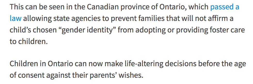 The primary piece I'd like to call attention to is one he published just 10 days ago titled "Transgender Activists Are Seeking to Undermine Parental Rights." Although the bulk of the content is repulsive, I will emphasize just a few passages.