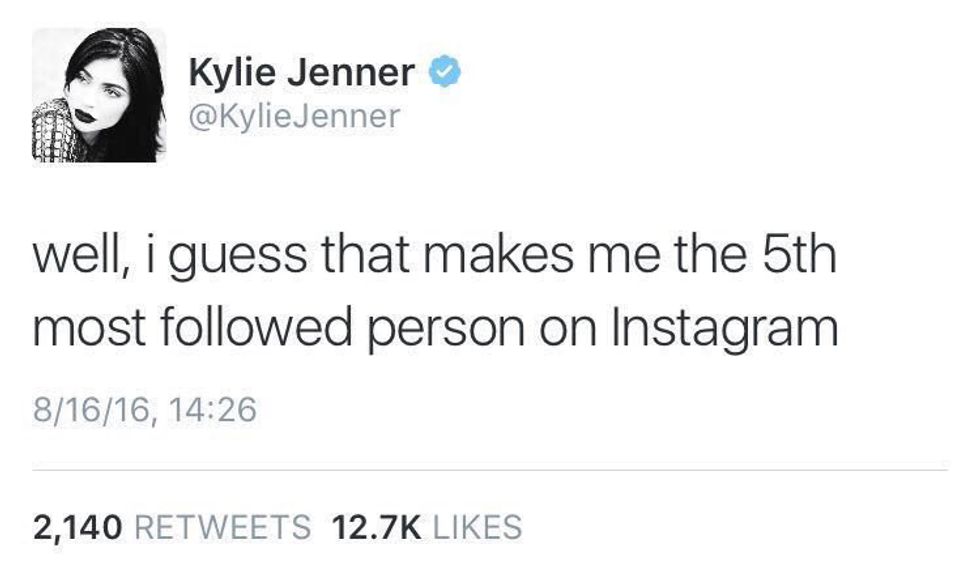 Meanwhile, all Kylie Jenner cares about is the fact that she is now the 5th most followed person on Instagram. I never thought I'd say this but let’s all try be a bit more like her.
