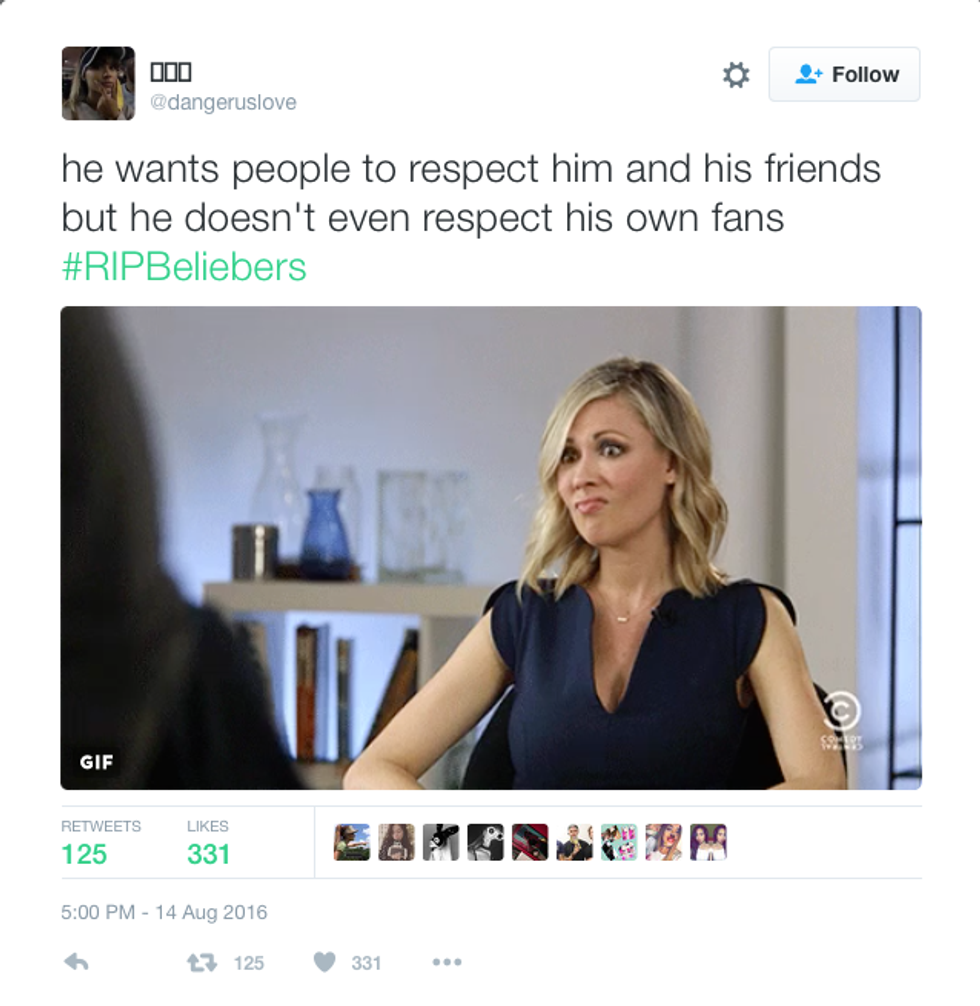 His fans were unimpressed and left feeling insulted. Cue hashtag #RIPBeliebers.