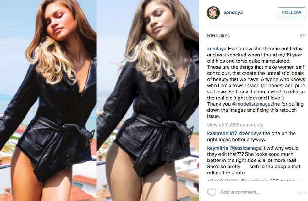 Photoshop usage has been so severe that the celebrities on the cover have called out the magazine for using too much photoshop. Earlier this year, Zendaya called out a magazine for photoshopping her hips, skin tone, and torso on Instagram. The idea that a company photoshopped someone so much that they were called out is ridiculous.