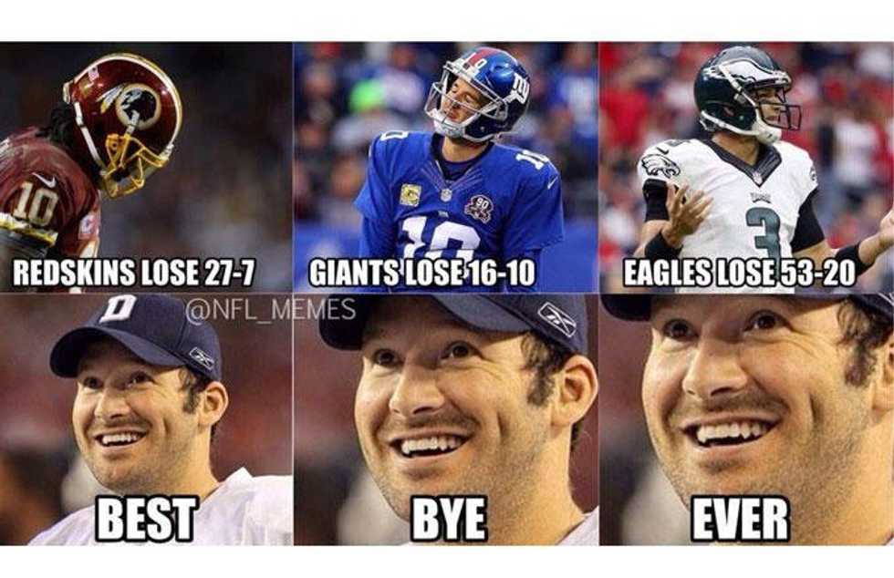 Whatever team you support in the NFC East, it’s safe to say you’re in for a soul crushing year. The Cowboys are suffering too many injuries to do well so I’m not sure why Romo told Brady we’ll see them in February, unless he’s going to go Super Saiyan. The Giants barely beat a torn apart Cowboys team and are as cocky as ever. The Eagles are unfortunately relying on Chip Kelly’s absurd and bewildering calls to win. And then there’s just the Redskins, who pretty much just exist.