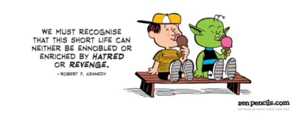 Change can also start with a simple act of kindness. Even though someone may express hatred towards you, retaliation is not the answer. Kind words and small expressions of love can go a long way. It may seem like a useless solution to the damage that's been done and the lives that have been lost but eventually, we will see a change in our society.