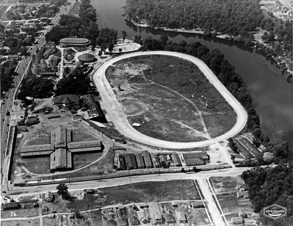 Ever wonder what those fenced-off, concrete steps in front of the Community Building were? Well, wonder no more! Those are the remaining bleachers that oversaw many sporting and entertainment events. South Bend, Indiana hosted one NASCAR race in history, and guess where it was held? That’s right, it was held at Playland Amusement Park.