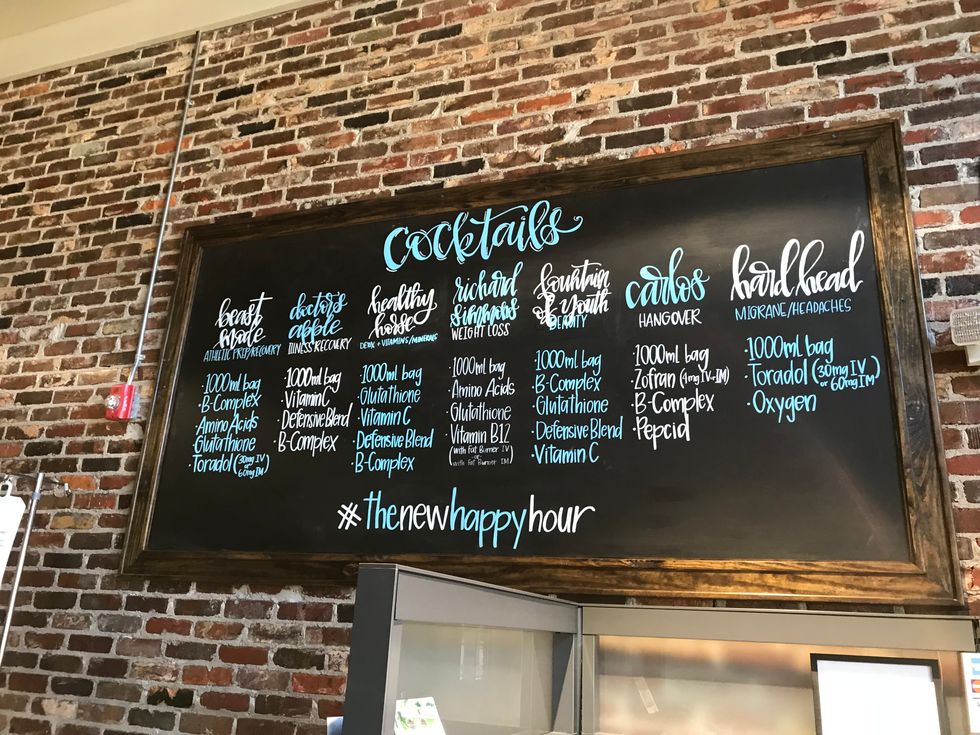 I received an IV cocktail called The Doctors Apple. It is a 1000ml bag with a defensive blend, vitamin C and B-Complex.