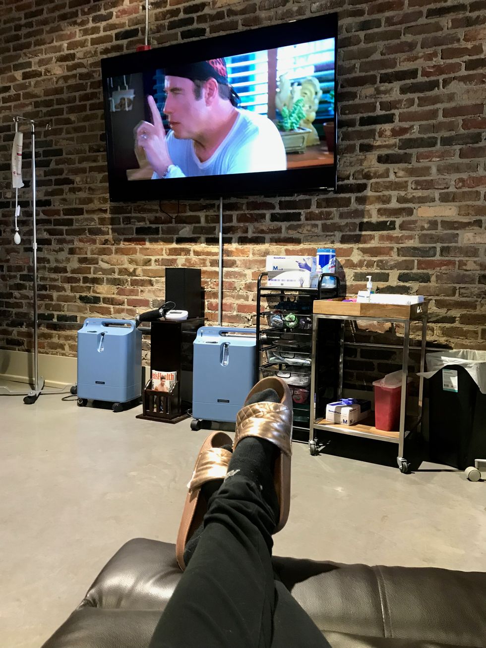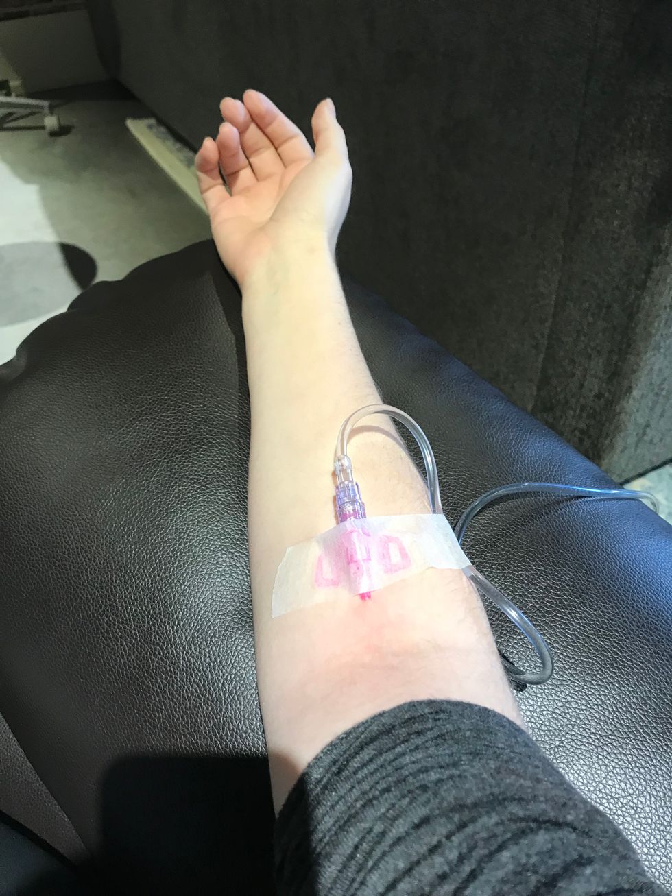 Now, this may not be the best option for those afraid of needles but, the soft prick in my arm was quickly replaced with the cooling effect of the IV bag releasing liquid into my body.
