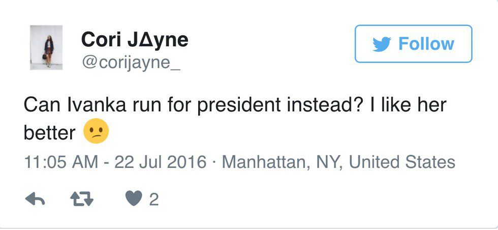 It seems like 2016 has been a crazy combination of two things: police brutality and the Presidential election. I'm sure at one point in this election season you've either turned on the news to listen in on some crazy thing Donald Trump or Hillary Clinton happened to have said or you turned the channel to actually listen to them both speak and where they put their support on important topics such as gun control and foreign policies. If you happened to turn on the TV in time to see Trump speak, you may have recognized or questioned who that tall, beautiful, blonde woman was. For those of you who knew without question, I'm talking about Ivanka Trump.