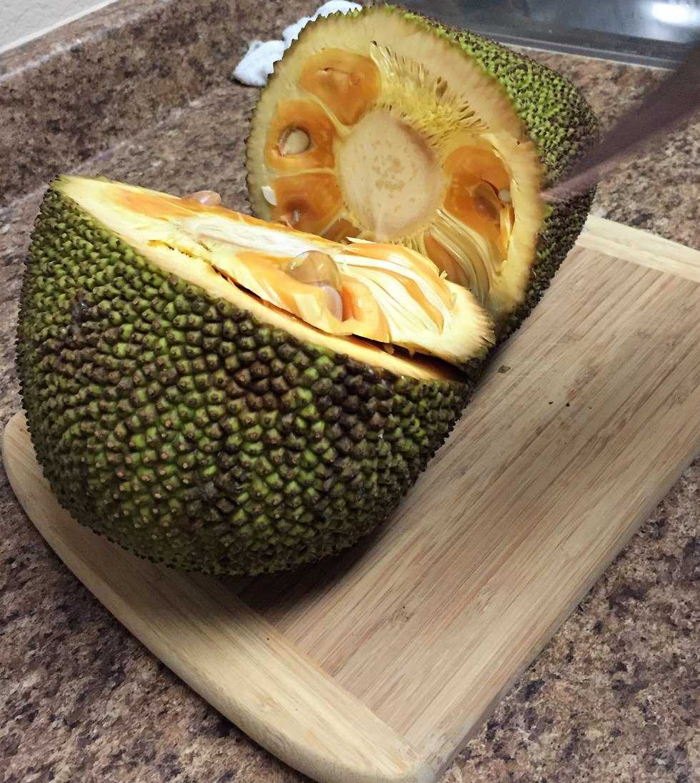 The jackfruit is native to Asia and is a tropical tree-borne fruit. They can grow to weigh nearly 80 pounds, making the jackfruit the largest tree-borne fruit! Immediately after it is sliced open, the fruit has a very distinctive, sweet smell which has been described as a combination of pineapple and ripe banana. Once you cut passed the threatening outer skin, you encounter amber fruit pods separated by white fibers. Beware, the fruit emits a very sticky syrup that actually has been used as glue! The sweet fruit can be eaten fresh or used to make sweet dishes. But before you bite into this wonderful fruit, each pod has a large seed in the middle which can also be cooked to take on nut-like properties. If the fruit is harvested before it is ripe, it can be used as a vegetable or even as meat! Not only is it massive, therefore able to feed many people, and versatile, it has significant nutritional value. Quantity and quality! Specifically, the jackfruit is rich with simple sugars, which provide energy, dietary fibers that protect the colon, vitamin A with carotenes to protect from lung/oral cancers, and vitamin C aids in building resistance against infections. On top of that, it is one of the few fruit to be a great source of B-complex vitamins and the seeds are rich in starch as well as protein! If you are not convinced yet that the jackfruit is a super food, each tree can produce 100-200 fruits yearly and is undemanding to cultivate. Once the tree has matured and established itself, it requires minimal upkeep; only pruning off dead branches and watering if it is in an area of lower rainfall.