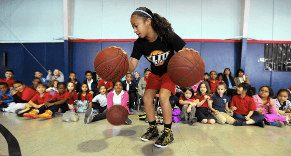 With these statistics and achievements, it seems like Jaden was born with a basketball in her hands. In a sense, she was. One article says she started dribbling a ball at two years old and a year later could dribble two at the same time. Her interest of basketball could be attributed to the fact that the game runs in her family. Both parents played high school ball, her dad is the varsity coach at her high school, and her brother Julian is becoming a basketball phenom himself (his highlight videos have 6 million views on YouTube). She's played with her brother and other boys her whole life, so the switch to playing with high school girls was an easy one. Another reason why she dominates the court is because of her work ethic. Her basketball workout includes practice with her brother, 1,000 shots, and an hour of ball-handling. Makes me exhausted just thinking about it.