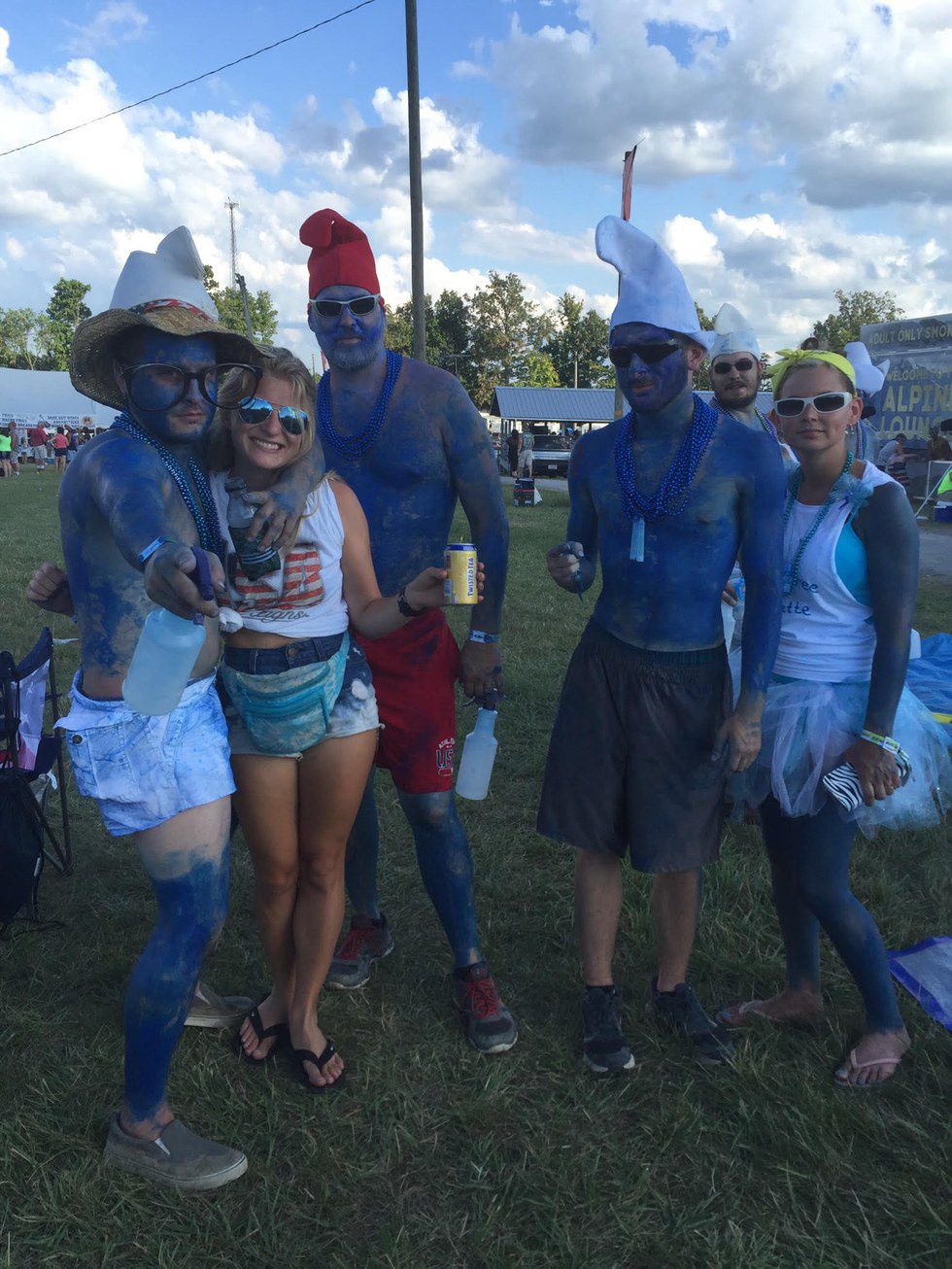 The Jambo-goers are a happy folk. Their pleasures are simple ones: a breezy afternoon, good music, a lawn chair that's color has faded in the sun and a cold can of beer. At Jambo, a day without a buzz is a day that never was. Dad-bods stand in the vast crowd of country folk chuckling with koozies in hand and cowboy hats on top of their heads. Some of the more bold Jambo-ers dress as recognizable cartoon characters, like Fred Flinstone or the Smurfs.