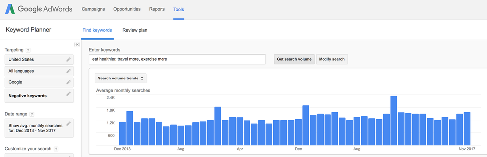 Every January, Google searches for travel hacks, diet plans, and gym memberships peak. January 2018 is on pace to go even higher than the last 4 years.
