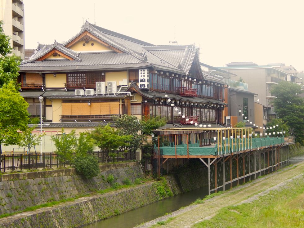 As seen the banks of Kamogawa in Kyoto, Japan.