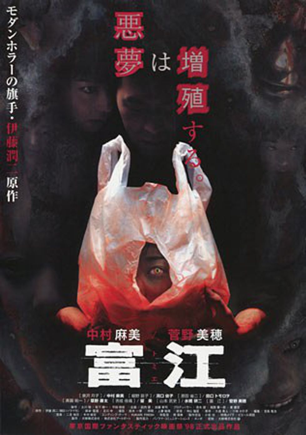 This one (and the rest of the movies series) is also based off of it's manga counter part. Created by the same mangaka as Uzumaki, Junji Ito, it's considered one of the greatest horror manga icons. In this series, starting with the first film, it starts off with the police investigating the murder of high school girl Tomie Kawakami. In the months following the murder, they learn nine students and a teacher have either committed suicide or gone insane. The detective assigned to the case learns that three years prior, another Tomie Kawakami was murdered in rural Gifu prefecture. He soon found out that there were other slain Tomie Kawakamis stretching all the way back to the 1860s. As the story progresses, you start to figure out that she isn't who you thought she was in the beginning. Gotta be some creepy coincidence right?