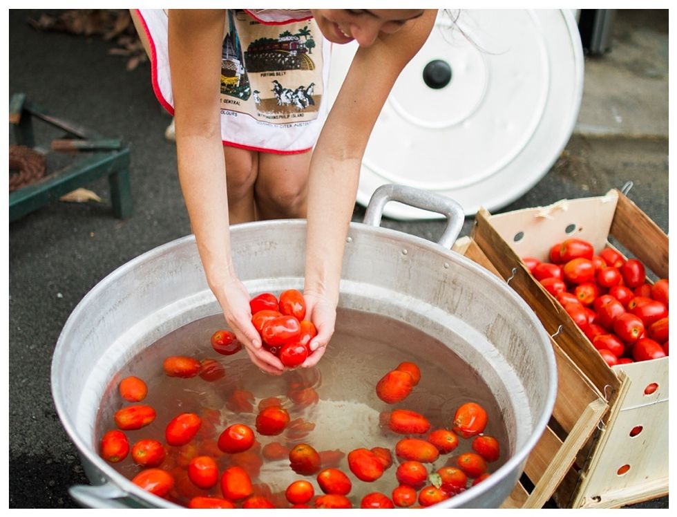 Barbara Marcella Z. taking part of her family's annual tomato jarring tradition.