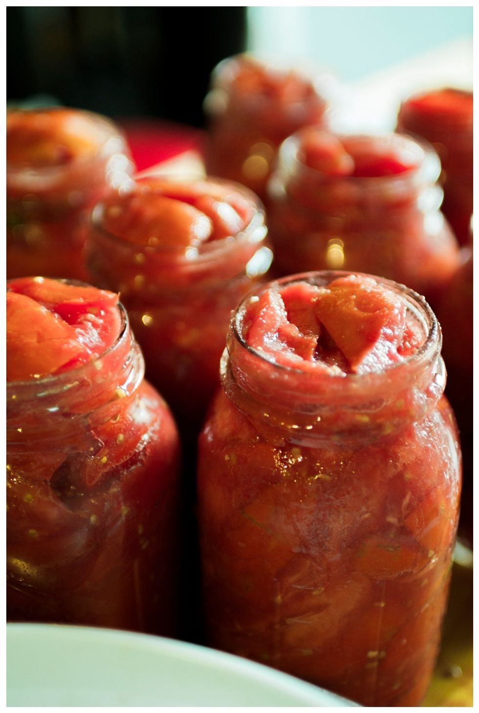 The process starts by laying them out covered in blankets to keep warm and fully own up to their potential. The tedious parts are the washing; which isn't once and done, cutting and squeezing out excess water is next. Cooking occurs twice; the cut tomatoes prior to passing and after, which leads to jarring; with the satisfying "click" of heat-sealed tops. Moreover, the jars (depending on how many you make) can last you an entire year.