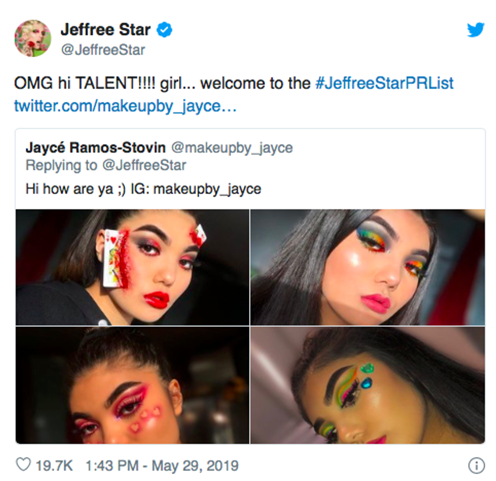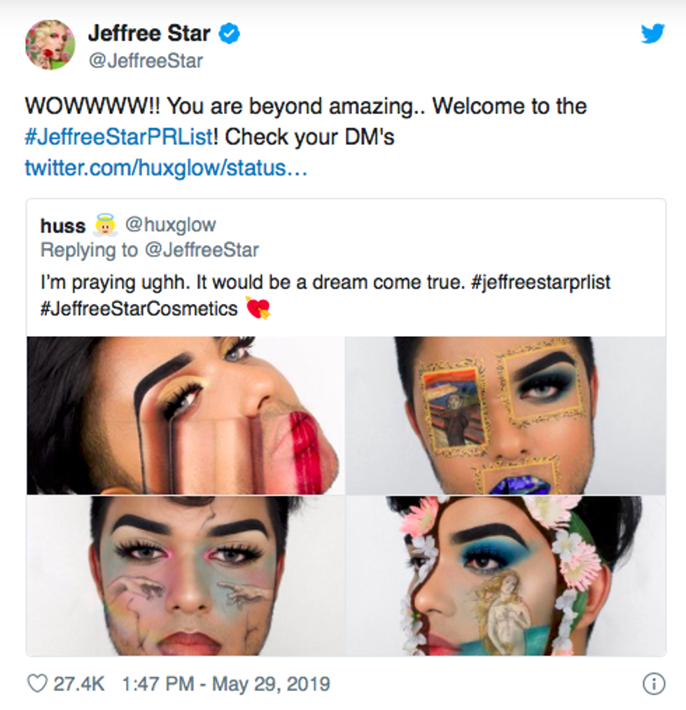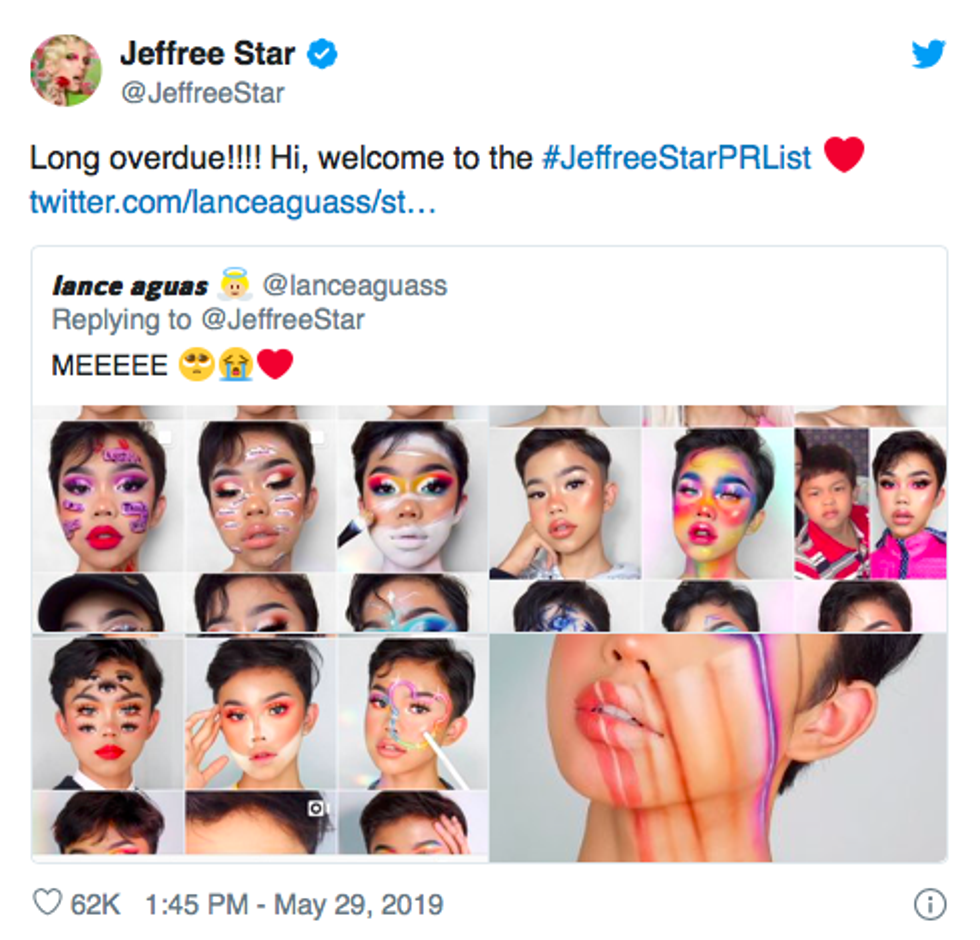 Every once in a while Jeffree will go on Twitter and seek out all the fans who use the #JeffreeStarPRList, and send them PR packages. He's just spreading more kindness in the world.