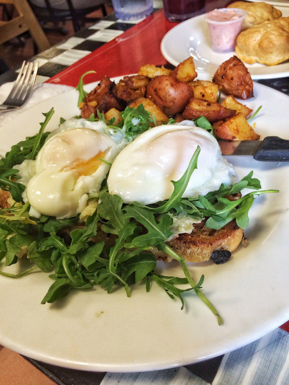 Recommendations: Apple/Lemon/Ginger Juice, Eggs Bene'witch' (griddled olive bread topped with lemon artichoke spread, organic arugula & poached eggs), Buttermilk Biscuits (served with homemade Strawberry Butter)