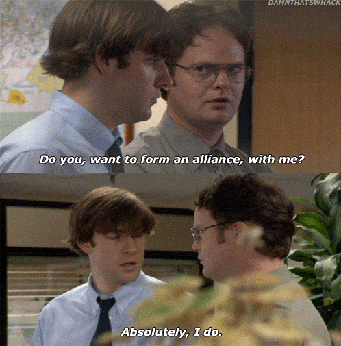 2. When Jim forms an "alliance" with Dwight.