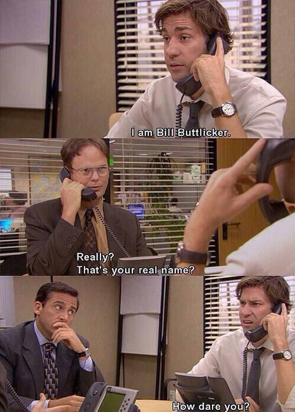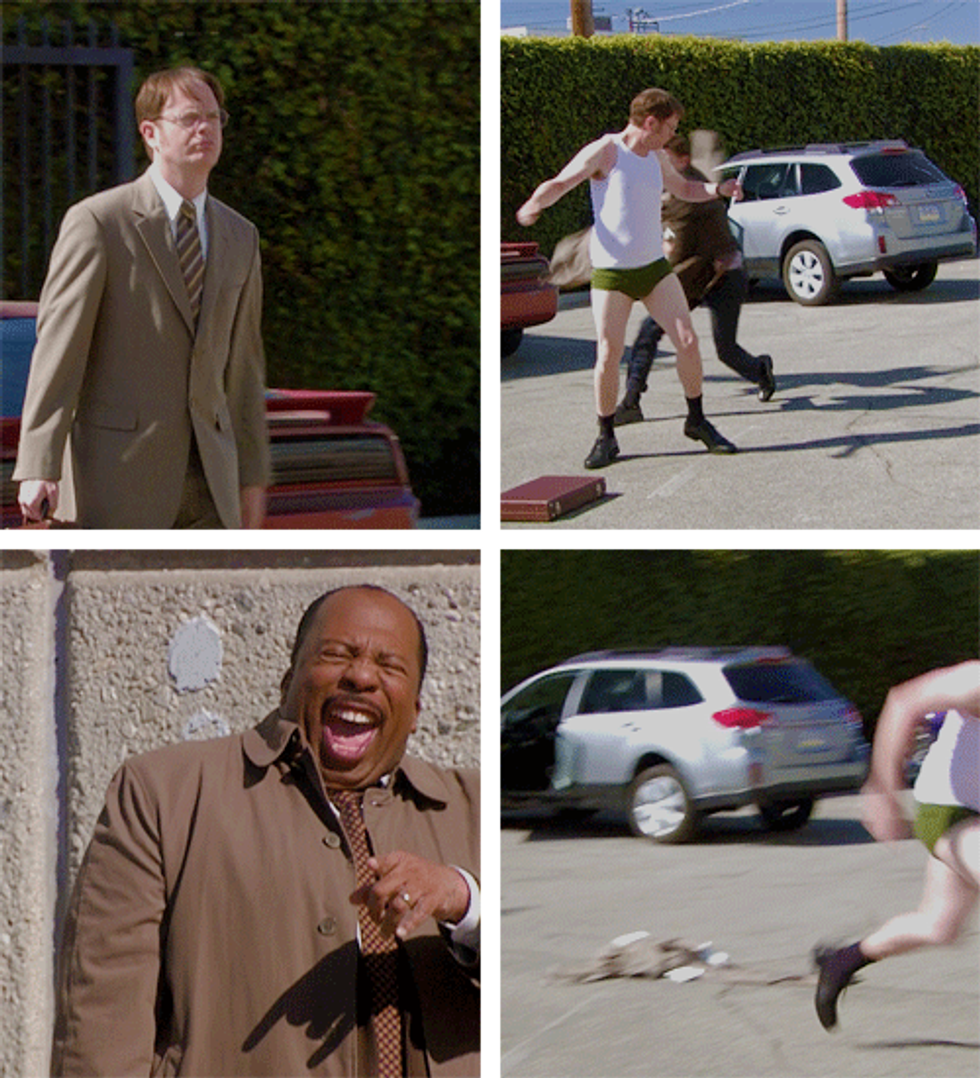 This ends in Dwight screaming "BUTTLICKER, OUR PRICES HAVE NEVER BEEN LOWER!" on the top of his lungs.