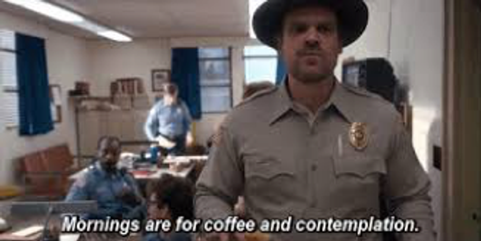 Hopper’s lines are always a combination of wit, humor, and sarcasm. “Mornings are for coffee and contemplation.” “You wanna know the worst thing that’s ever happened here in the four years I’ve been working here? You wanna know the worst thing, was when an owl attacked Eleanor Gillespie’s head because it thought that her hair was a nest.”