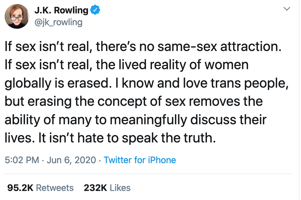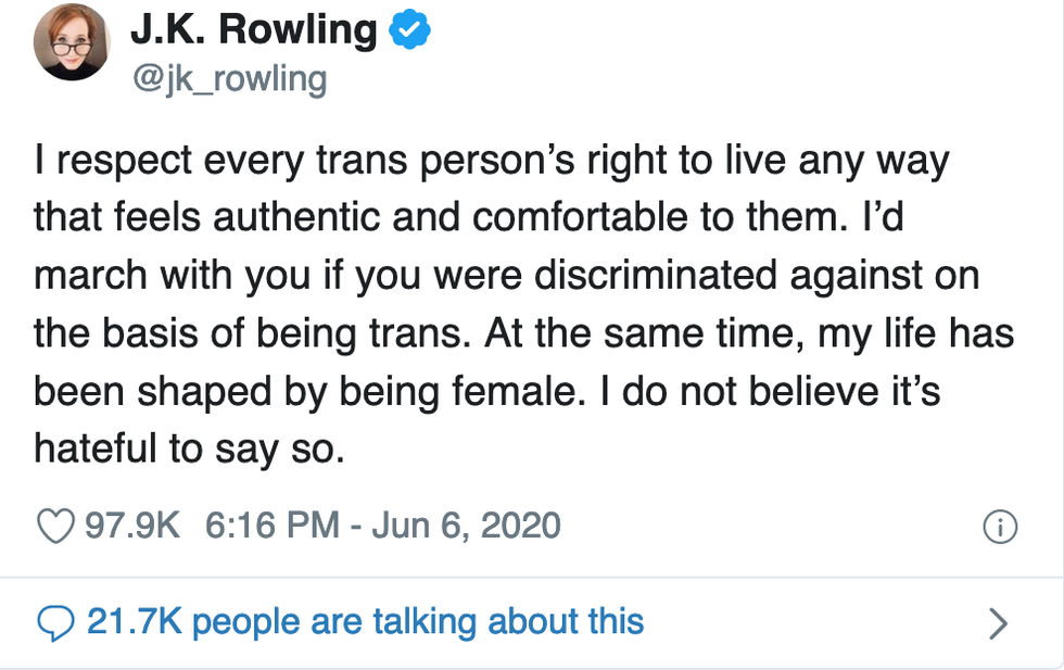 For the massive amount of Harry Potter fans with Twitter accounts who follow J.K. Rowling, this story is old news. For those who have not been on Twitter recently, J.K. Rowling tweeted something which she is now under fire for. Below is the tweet in its entirety.