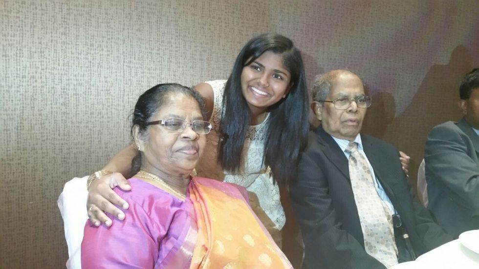 When we arrived at the location of the luncheon, I was starving oddly enough. The last time I experienced a loss in the family, I couldn't exactly enjoy food the way I would if I were not grieving. I thought of my grandfather as I ate the food from our island nation of Sri Lanka and the corner of lips couldn't help but firm up into a smile. He may have been gone but in many minutes from that moment, I was going to use my breath to bring a hastily written summation of his life into the room for those who came to support us Alfreds (my grandfather's middle name and the family surname). As I finished my meal, I took deep breaths in and out, and to a spectator, it may have looked like hyperventilation. I said goodbye to my grandpa only a few hours before and really had enough time to honor him and breathe half a breath before I returned to my home country for my graduation festivities. I looked across at my paternal cousin as she tried to comfort me by means of talking about her daughter, my niece, to help me find my center as well as some consolation. My legs found themselves lifted up by the balls of my feet and soon enough, I was upright, not very ready to give my grandfather another tribute, but in the medium of spoken word.