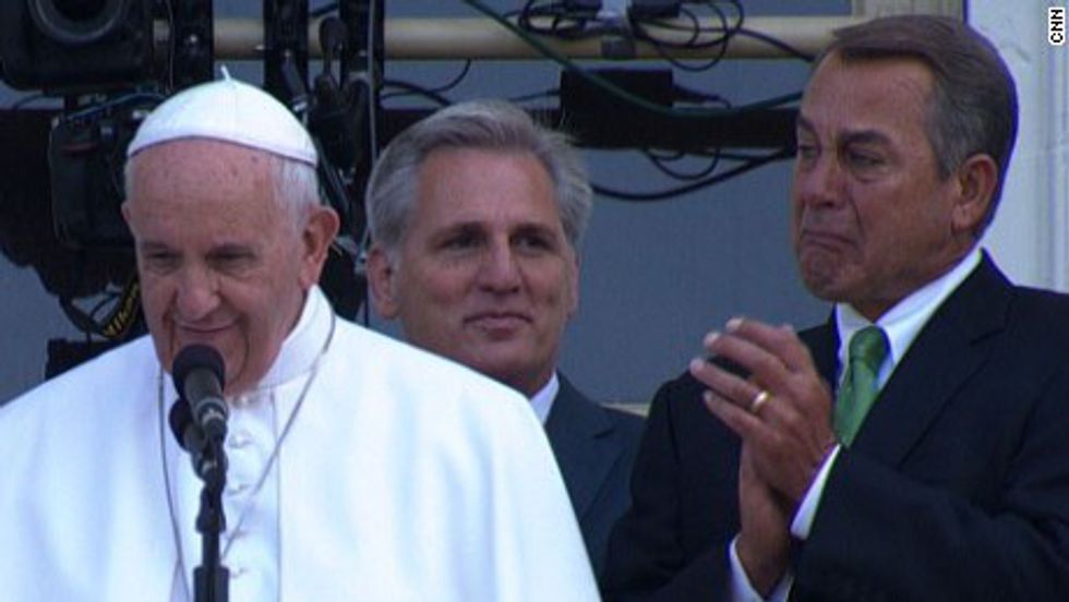 The day before Boehner announced that he would step down from his position at the end of October, the Congress had a meeting with Pope Francis (Learn more about that meeting here). Being a Catholic himself, Boehner was the one who invited Pope Francis in the first place to join the joint session of Congress. As Pope Francis gave very good points and urged the Congress members for change, many people witnessed Boehner crying, but it just showed you how powerful the Pope's message really was. After the meeting, Boehner found himself alone with Pope Francis for a few minutes. Boehner said as he was talking to him, Pope Francis told Boehner to pray for him. “The Pope puts his arm around me and kinda pulls me to him, and says, ‘please pray for me’. Well, who am I to pray for the pope, but I did,” Boehner says. So, Friday morning before making the announcement, Boehner said that he was saying his morning prayers and thought to himself today was the day. You can read more about it here.
