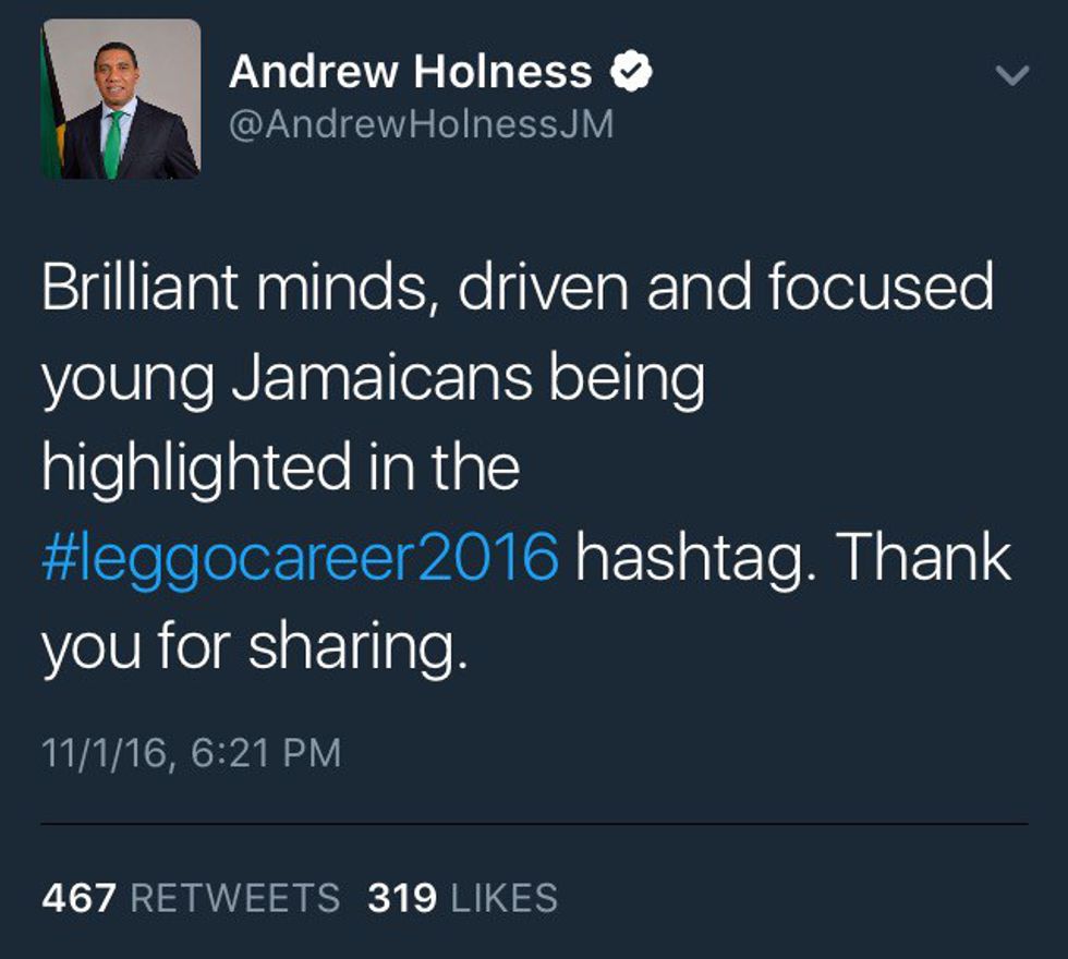 Check out the movement on Twitter by searching the hashtags, "#leggocareer, #leggocareer2016, #leggocareerja" and follow the brand @LeggoCareerJa.