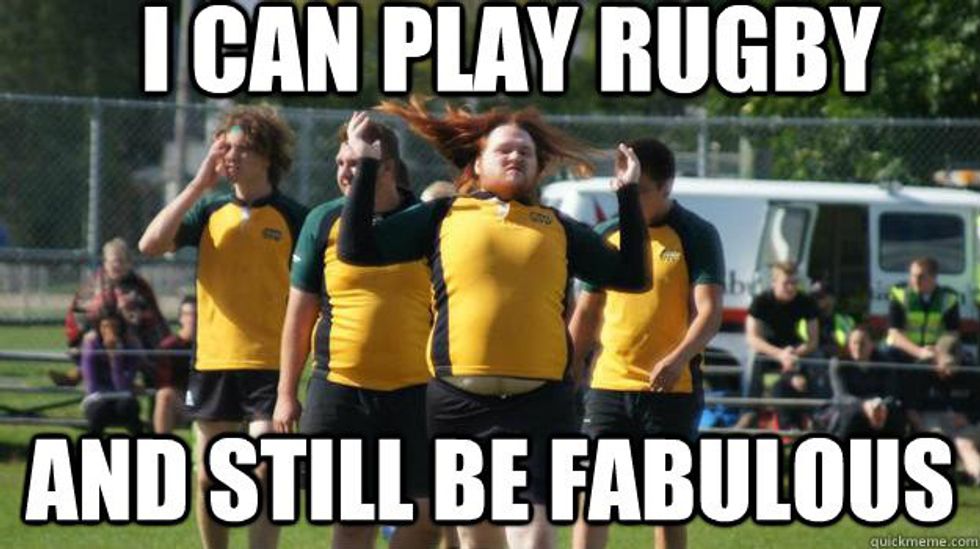 No matter what you deem your fitness level to be, there's a place for you on the team. Whether you're a beginner or played rugby previously, both the coach and the veteran members will work with you towards improving your skills as a player. Even though fitness days can be brutal and practices can run long, it's always a blast working out and becoming the best rugger you can be. As a self proclaimed potato that started her rookie season completely out of shape, I can attest to this.