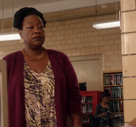 Anytime any of the main characters on this show use a computer, it’s hysterical. In Episode 3, Kimmy’s roommate Titus goes to the library to search for a place where he can buy a costume for his one-man show and realizes people are talking about it on the Internet. He exclaims his excitement but is quickly silenced by a strict librarian. His response to being hushed? To take a “face journey” through the comments section. We then watch Titus’ over exaggerated facial expressions as he reacts to the negative comments on his highly controversial show. The librarian shushes him again, and we then see a sign prohibiting “face journeys” in the library as well.