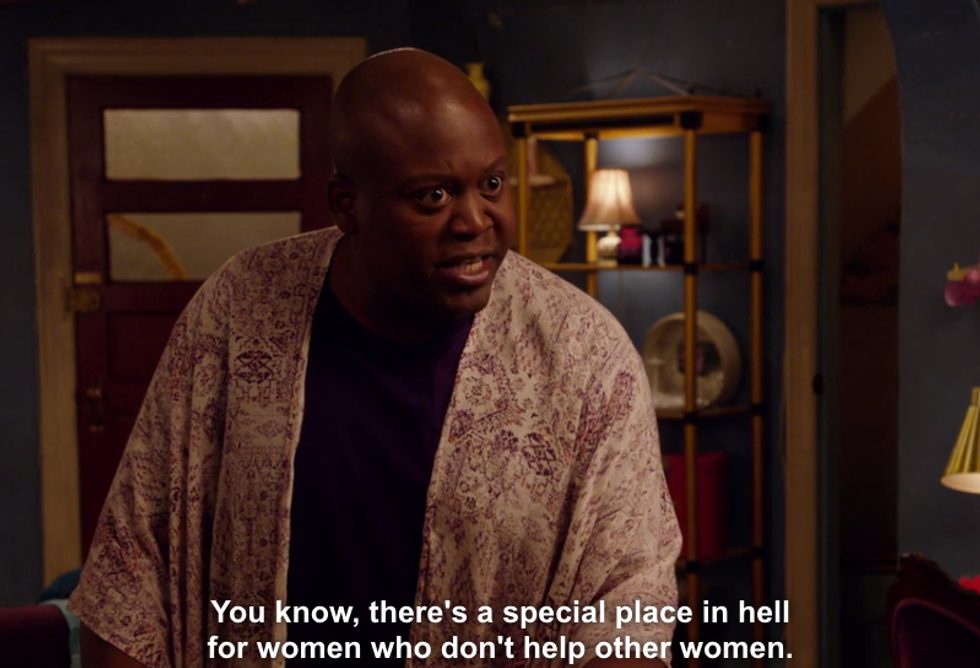 In episode nine, Kimmy and Titus have a roommate quarrel and Titus dishes out the same quote. To those up to date on their pop culture feuds, the line is an obvious dig at the entire Globes situation.