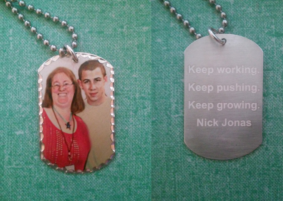 Even though the Jonas Brothers are no longer a band, I still support the brothers in their solo projects. Joe started a new band, DNCE. Their ep, Swaay, is available on iTunes. Kevin is a father and a business man. He has created an awesome app, Yood. He also started a contracting company, JonasWerner Homes. Meanwhile, Nick has been successful in both acting and singing. His self-titled album, Nick Jonas, includes the hit single, Jealous. Nick also stars in the hit tv series, Kingdom. Recently, I meet Nick Jonas, a dream I've had since I became a fan. It was an experience I would never forget. Out of all the brothers, Nick has inspired me the most. His music helped me through the loss of my grandma and my aunt's miscarriage. Shortly after I met him, Nick tweeted this quote "Keep Working. Keep Pushing. Keep Growing." I loved the quote so much, that I had engraved onto a dog tag, along with my meet&greet photo.