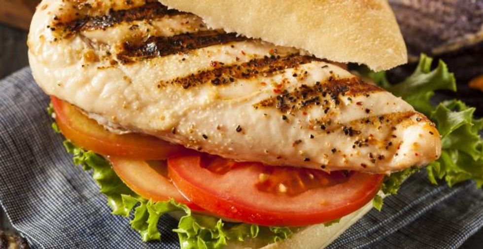 The Grilled Chicken Sandwich is "marinated grilled chicken in wheat bun with lettuce and tomato." [260 kcal]