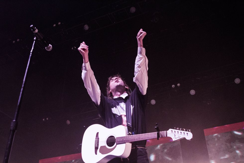 Following Tall Heights was Tennesee indie rock band, Colony House. It was evident that the band had quite a few fans in the crowd as screams erupted as they took the stage. One of the highlights was when the band, apart from lead singer, Caleb Chapman left the stage and he performed, "Moving Forward" with his acoustic guitar. Towards the end of the song, the band returned, and they sang together at the center mic. "That was so cute!" screamed a girl in the audience.