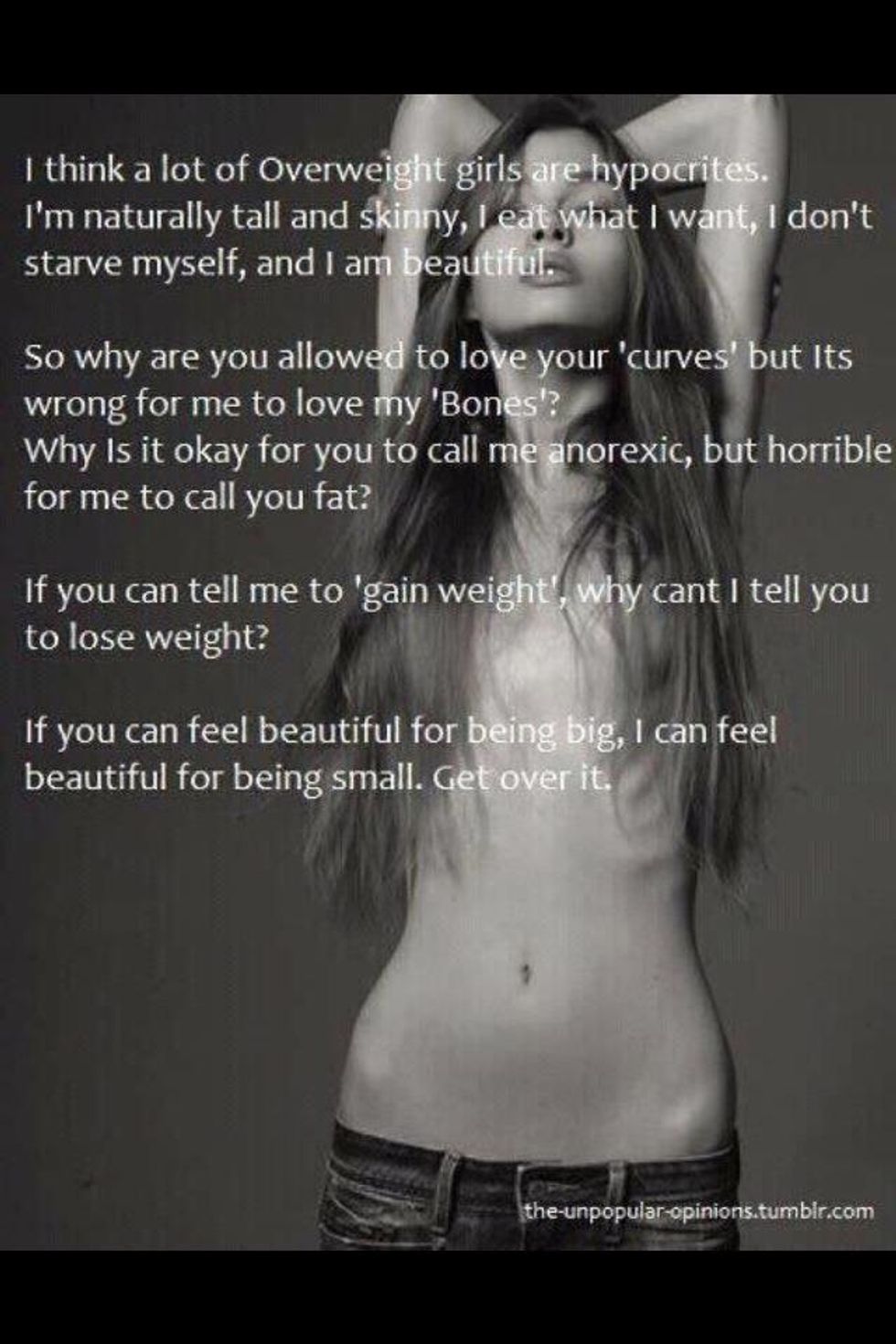 Being insecure over being too skinny vs. bring insecure because your overweight is the exact same thing. It's a double standard.
