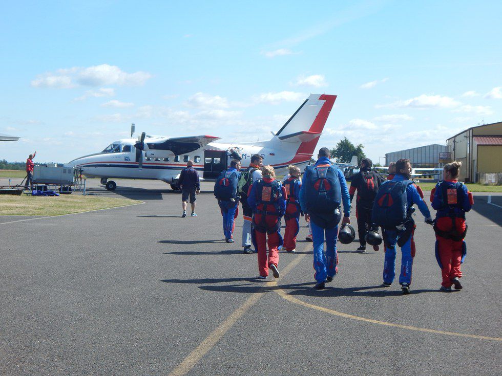 The next morning, we headed out to the airfield together, and I would be jumping with the first group of the day. A man with a thick Czech accent gathered me and two other women into a room to suit up and begin our instruction. Now I don't know if the Czechs don't believe in personal safety or maybe he wins a bet if one of us injures ourselves, but our course lasted no more than two full minutes, and it was off to board the plane.