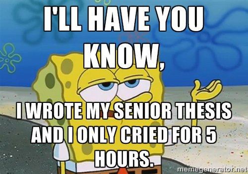 You have probably started to think about what you want to write about for your senior thesis, or whatever the equivalent is for your major. The point is, you are ready, but you also know you have a reservoir of tears built up for it.