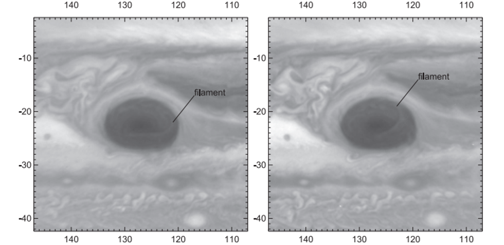 Alongside providing new data surrounding Jupiter’s storms, photos captured show a strange new phenomena. At the center of the storm, a strange wispy filament is visible. Scientists do not know what this is, though now they question if it is related to the slowing of the storm.