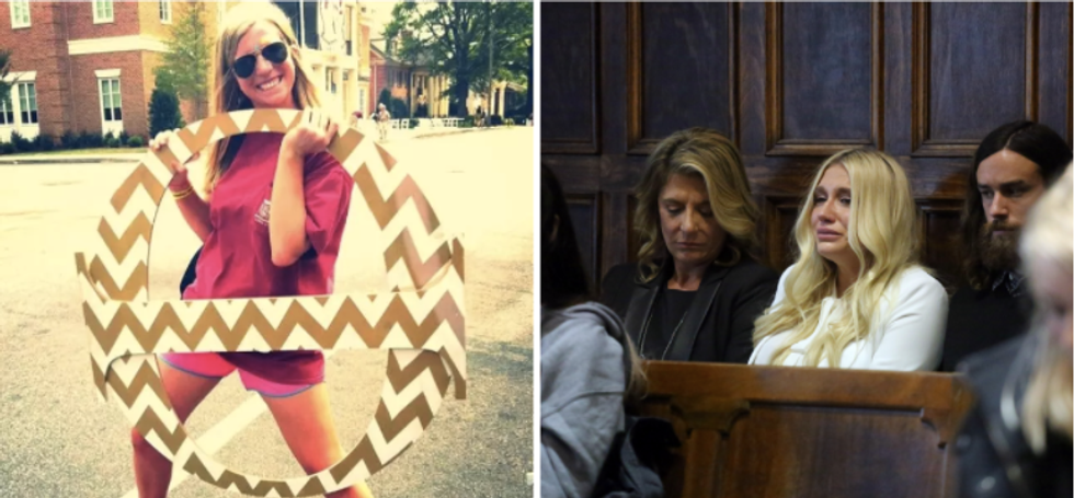 Megan Rondini at the University of Alabama; Kesha crying after losing her case.