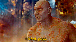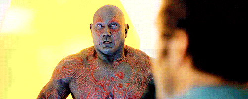In Guardians of the Galaxy Vol. 2, he has joined Peter Quill's crew, gotten over maybe 60% of his issues, and has taken on a sort of weird uncle role in the group, and honestly? Weird Uncle Drax is relatable as hell. Here are some of his finest moments from the trailer: