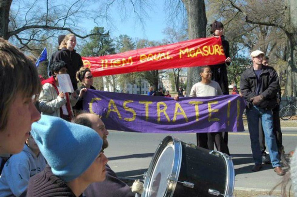 Fast forward to a more recent example: almost every conceivable major activist group did everything in their power to fit the Duke lacrosse scandal of 2006 into their narratives. White over black, rich over poor, man over woman - each one was viciously exhorted in public humiliation of those players. Below is an actual banner displayed on Duke's campus shortly after the night in question, just to give the reader an idea of how gloves-off the reactions had become.