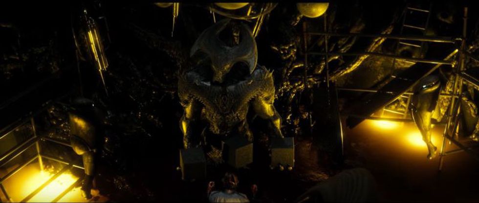 Below is a picture of Steppenwolf in a deleted scene from "Batman v Superman," featuring Jesse Eisenberg's Lex Luthor.