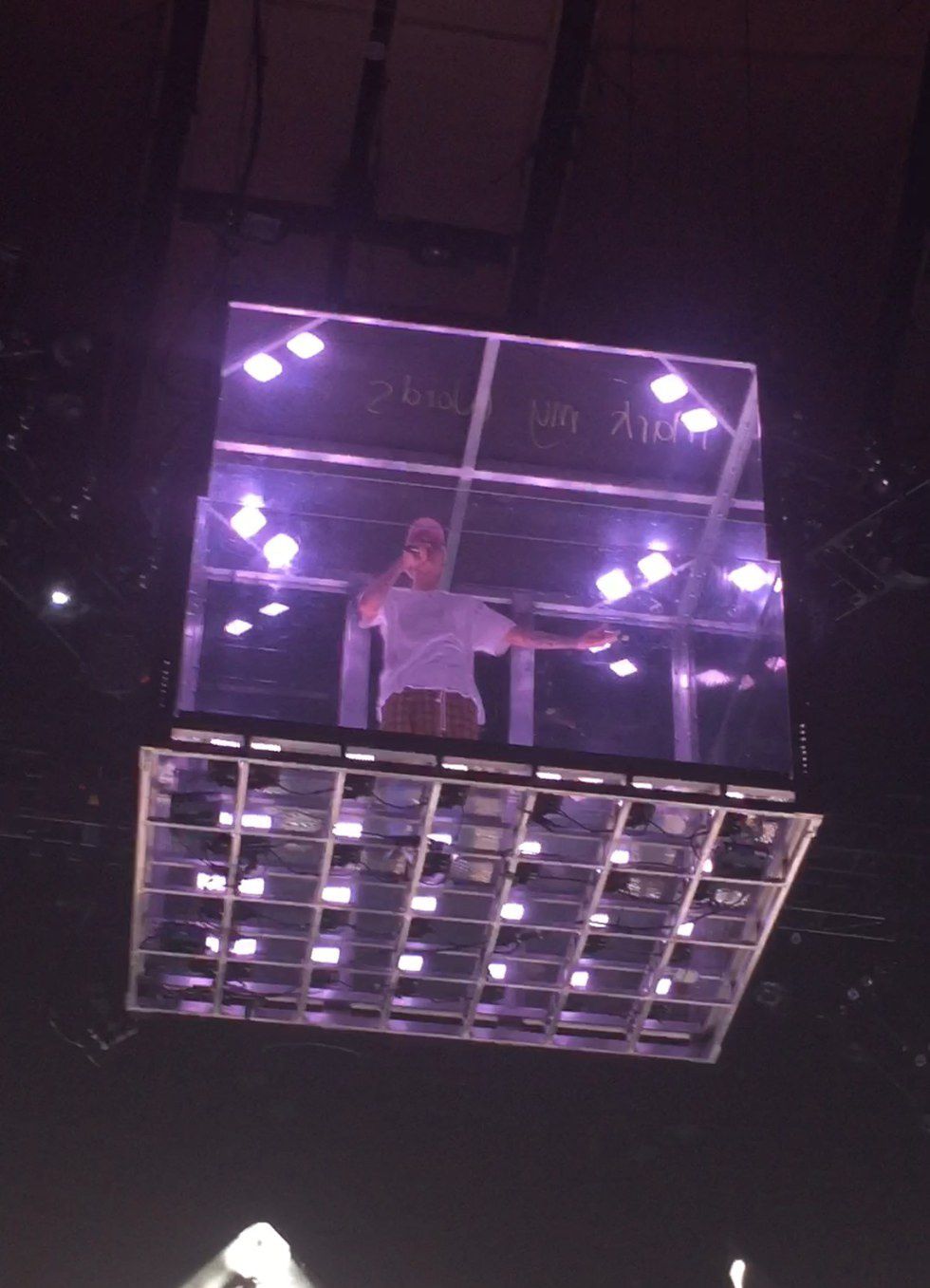 8:50 PM July 18th 2016 Justin Bieber finally hit the stage coming out in a glass box singing Mark My Words. The energy in the venue was unbelievable. You could just tell how blessed everyone was feeling to be there in that moment taking it all in.