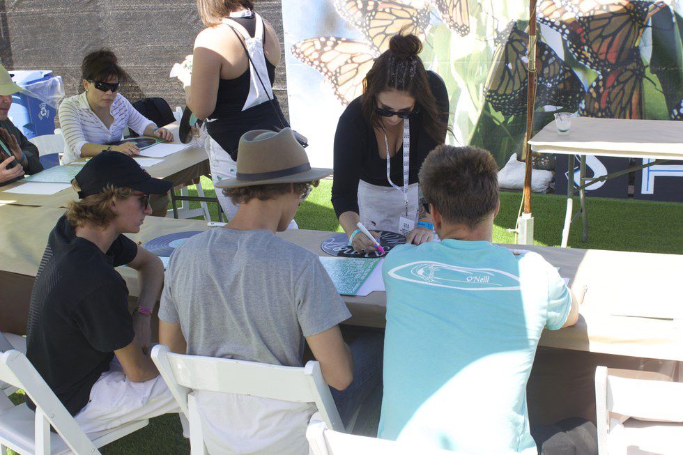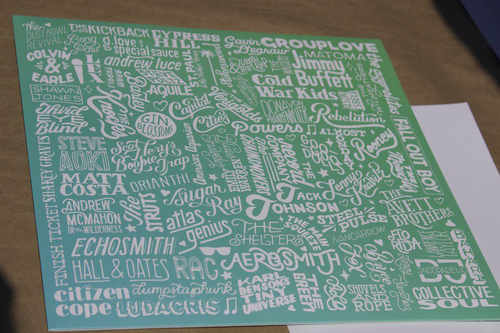 I got to take a peek inside the artist's lounge Saturday morning, where they were having a little workshop on record painting. Artists and others could sit down and create a Kaaboo 2016 record to take home with them. This workshop was presented by a design studio in San Diego called San Diego Letters. They host monthly workshops to teach people about the art of calligraphy. Their work is absolutely stunning, and they created some beautifully-crafted records for some of the artists.